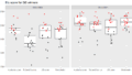 次に政党支持率と議席シェアで推移を比べてみます(衆議院選挙のみ)。例えば小選挙区のシェアは、全体465議席に対するシェアではなく、小選挙区の280議席に対する各党のシェアです。ここでは主要4政党のみに絞り、また前回選挙までは立民と公明それぞれも見ます。