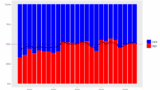 追記:なお当初は無所属議員12人をひとつの集団として計算しました。単純に横軸にずらっと無所属12人分が並ぶのが見にくいと思い、「無所属の会」的なかたまりにしたのですが、12人バラバラとして扱うべきとのコメントを頂きました(「どこぞのゲーム理論家」さん、ありがとうございました)。以下は上記の政策連携グループと別に、12人がバラバラに投票し、どことも政策連携をしない形で計算しています。なお個々の議員の投票力は同じなので、グラフでは代表の一人分のみ表示しています。